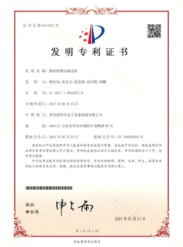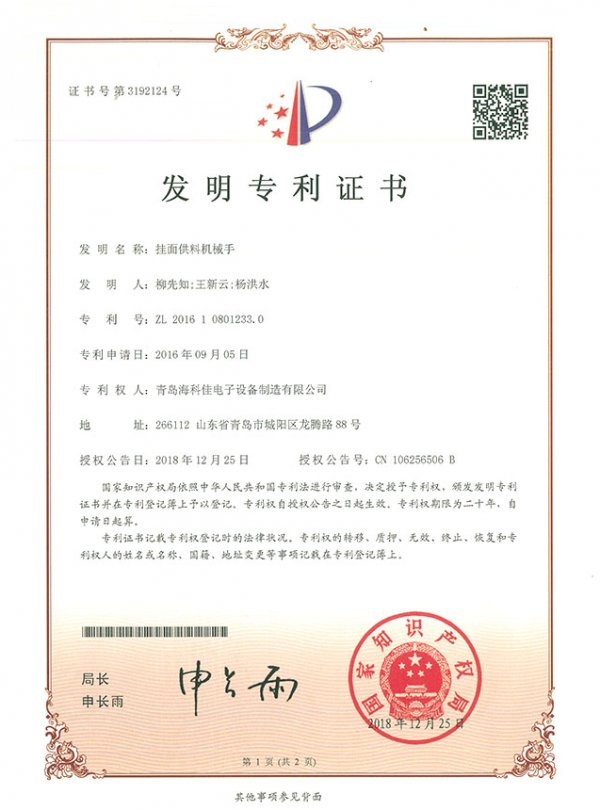 目前海科佳擁有員工460余人,研發90余人,技術服務60余人,每年的研發投入占銷售收入的10%以上。制造基地配有德國進口激光切割加工中心、立式加工中心、法蘭克數控機床、OTC機器人焊接等世界先進加工制造設備,建立了完備的ISO9001國際質量體系和GB/T2949-2013知識產權管理體系。擁有國家專利407余項,多項PCT國際專利,軟件著作權17項。