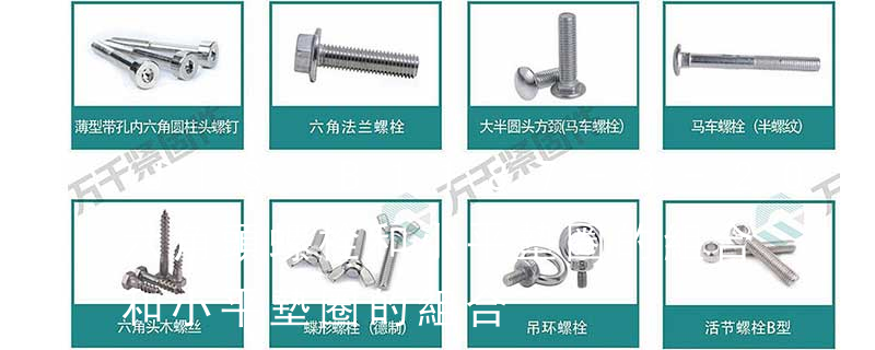 名稱: 1.機螺釘 2.自攻螺釘 3.鉆尾螺釘 4.墻板釘 5.纖維板釘 6.木螺釘7.六角木螺釘 8.不脫出螺釘 9.組合螺釘 10.微型螺釘 11.家具螺釘 12.電子螺釘 頭型: 1.六角頭(hexagon head) 2.六角頭法蘭面(hexagon head with fla