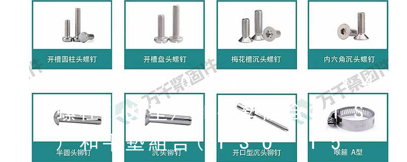 螺栓類:外六角螺栓、外六角法蘭面螺栓、內六角圓柱頭螺栓、吊環螺栓、膨脹螺栓、沉頭內六角螺栓、盤頭內六角螺絲、馬車螺栓、雙頭螺栓、蝶型螺絲、活節螺栓、地腳螺 栓、U型螺栓、四角螺栓等 螺帽類:鉚螺母、吊環螺母、六 緊固件,是作緊固連接用且應用極為廣泛的一類機械零件。緊固件,使用行業廣泛,包括能源、電子、電器、機械、化工、冶金、模具、液壓等等行業,在各種機械、設備、車輛、船舶、鐵路、橋梁、建筑、結構、工具、儀器、化工、儀表