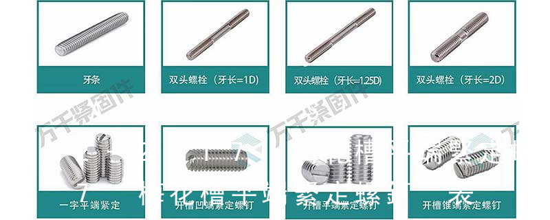 1. 內六角平端緊定螺釘 GB77-85(ISO4026-1977) 材料: 鋼 機械性能:33H 45H ; 不銹鋼 機械性能:A2-70 2. 內六角錐端緊定螺釘 GB78-85(ISO4027-1977) 材料:鋼 機械性能:33H 45H ; 不銹鋼 機械性能 ASME/ANSI B18.3 圓柱頭內六角螺釘 說明:ANSI是美國國家標準。ASME是美國機械工程師學會標準。ASME/ANSI 既是美國國家標準也是美國機械工程師學會標準